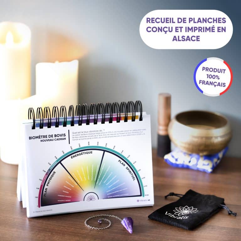 Contient les planches nécessaires à tout radiesthésiste : Échelle de Bovis, planches de géobiologie… Format A5, Édition 2022. Notre livre de 200 Planches de Radiesthésie est 100% conçu et imprimé en France. Vous trouverez sur la plupart des cadrans des explications afin de bien les utiliser, ces indications sont en français. Un précieux allié et compagnon de votre pendule Le livre contient les planches nécessaires à tout radiesthésiste professionnel ou amateur : Échelle de Bovis et taux de Vitalité Cadrans Généraux Guidances Planches de géobiologie Anatomie Homéopathie Lithothérapie Fleurs de Bach Environnement et Feng Shui Alimentation Ennéagrammes Planches pour mieux se connaître Orientation professionnelle Aspect relationnel Géographie …